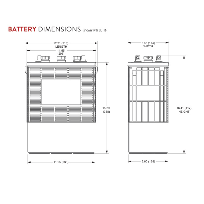 4x Trojan L16G-AC Deep cycle accu 6 volt 390Ah | 308 x 174 x 417 mm