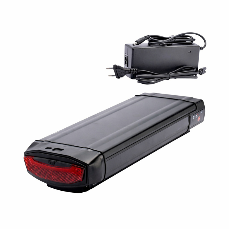 Het geïntegreerde achterlicht heeft een iets aangepaste vorm en wordt bediend met een knop aan de achterzijde van de accu, wat zorgt voor extra gebruiksgemak. De zwarte accu heeft compacte afmetingen van 390 × 130 × 66 mm en sluit naadloos aan op Stella e-bikes met Joycube-modellen zoals JCEB360-8.8, JCEB360-11, JCEB360-11.6, JCEB360-14.5 en JCEB360-17.5.